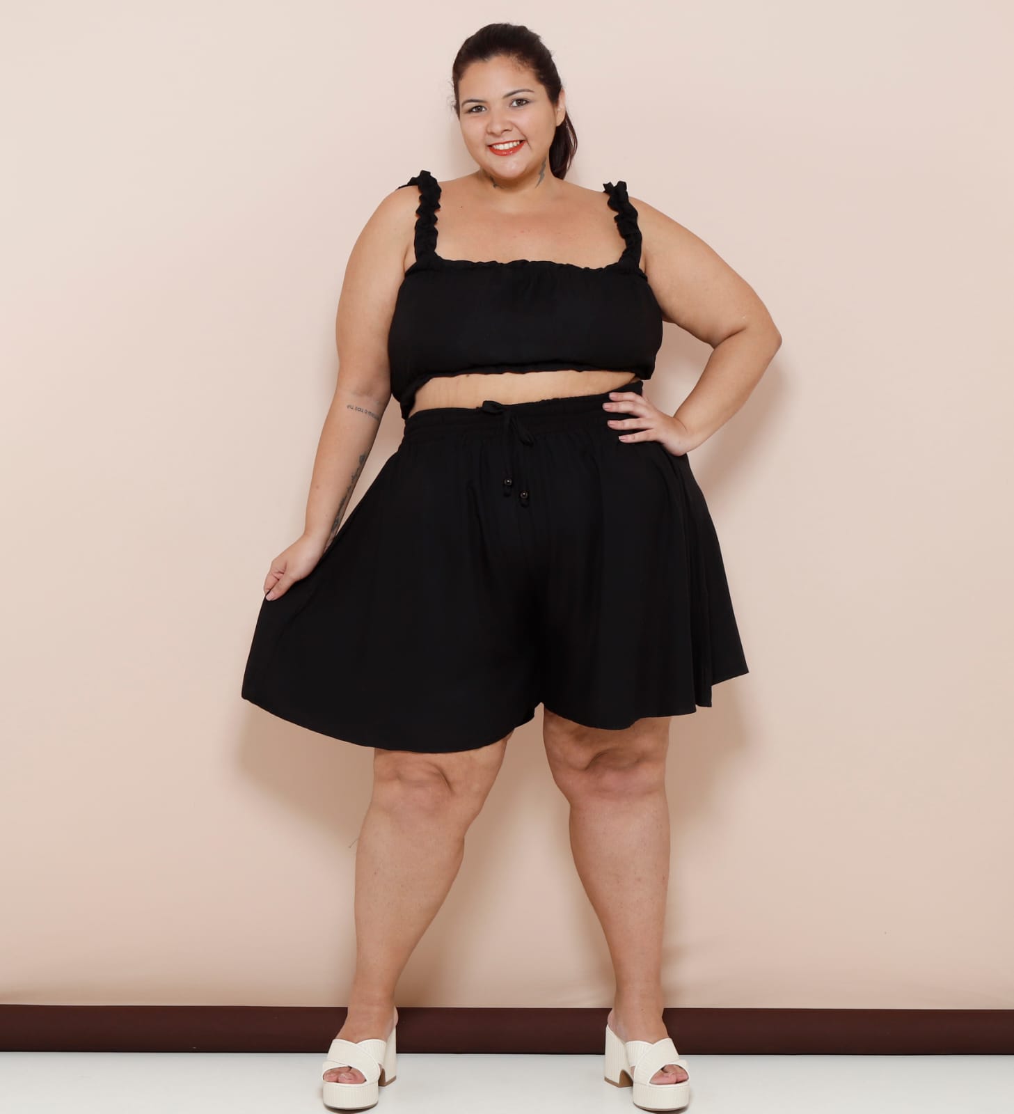 Os conjuntos são a aposta perfeita para quem quer praticidade sem abrir mão de estilo. No verão, eles ganham ainda mais força: tecidos leves, cores vibrantes e modelagens confortáveis criam looks completos em segundos e a Sojoy leva para o Pop Plus o Conjunto de short godê e top ciganinha em viscose. Preço: R$ 99,90